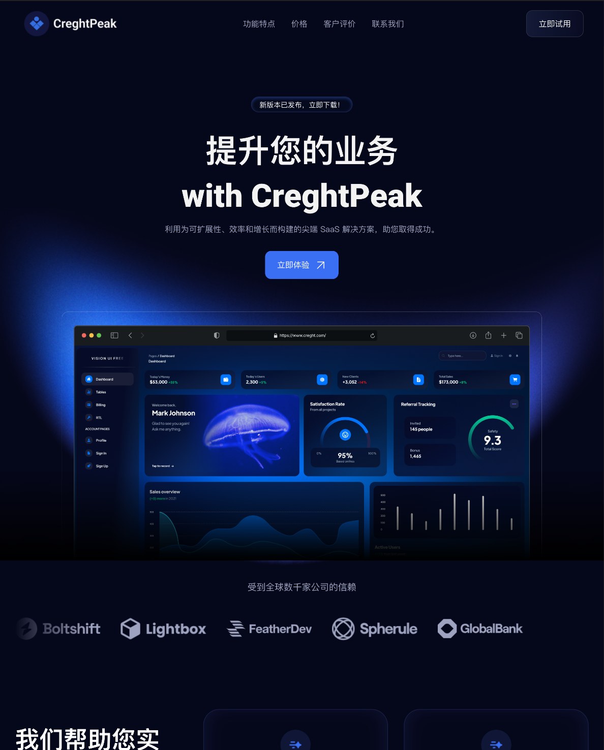 What can Creght do? Creght can quickly build corporate websites, personal sites, blogs, portfolios, digital business cards, etc.