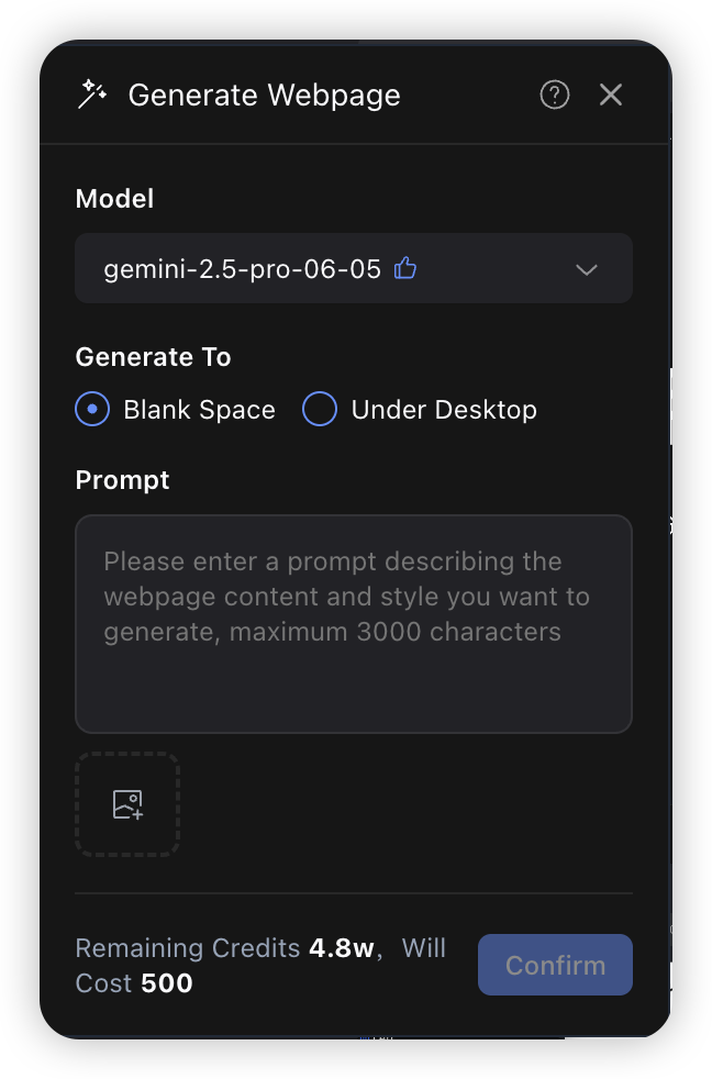 Different models have different capabilities; generally, the more expensive, the stronger the ability. For example, the most expensive model, Claude 3.7, costs 2000 points per call, and the generated pages are the most rich and beautiful. Additionally, the recently released Gemini 2.5-Pro (2025-05-06) shows better performance than Claude-3-7-Sonnet in some cases, so we recommend using this model.