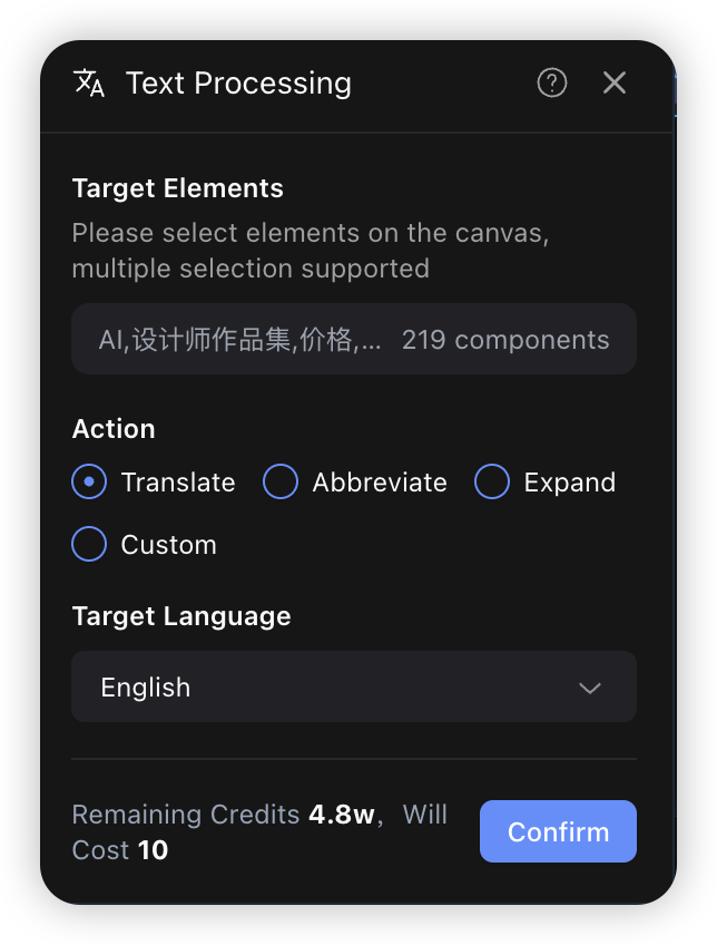 AI intelligently expands, summarizes, or rewrites text according to your needs, generating diverse and high-quality expressions.